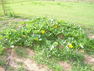 This is 1 squash plant. It has taken over the corn rows and started to head towards the pumpkins!